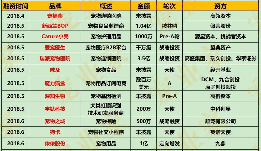 我们说过,资本从来不是万能的,但另一方面,拥有最强财富嗅觉、行业研究能力的资本,同样是用来观察行业的关键视角。宠业家简单梳理了2018年全年的宠业资本投融资事件,或许可以从中发现一些有趣的变化。